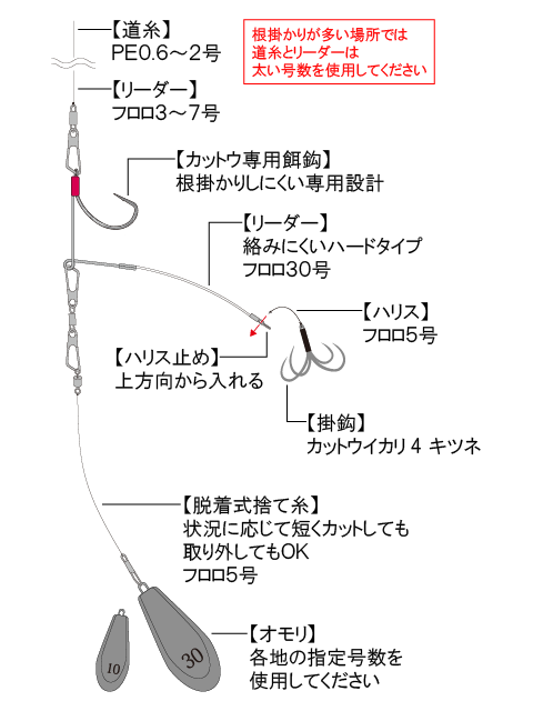 根掛かり対策の捨て糸は脱着式を採用し、