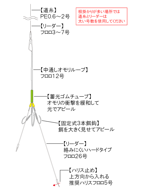 お好みのオモリ、掛鈎を組み合わせてご使用ください。