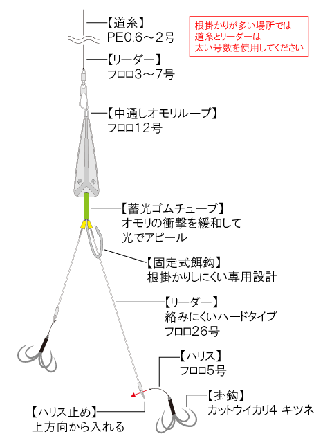 中通し+固定式餌鈎でアタリが分かりやすく、