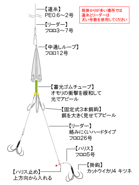 中通し+固定式餌鈎でアタリが分かりやすく、